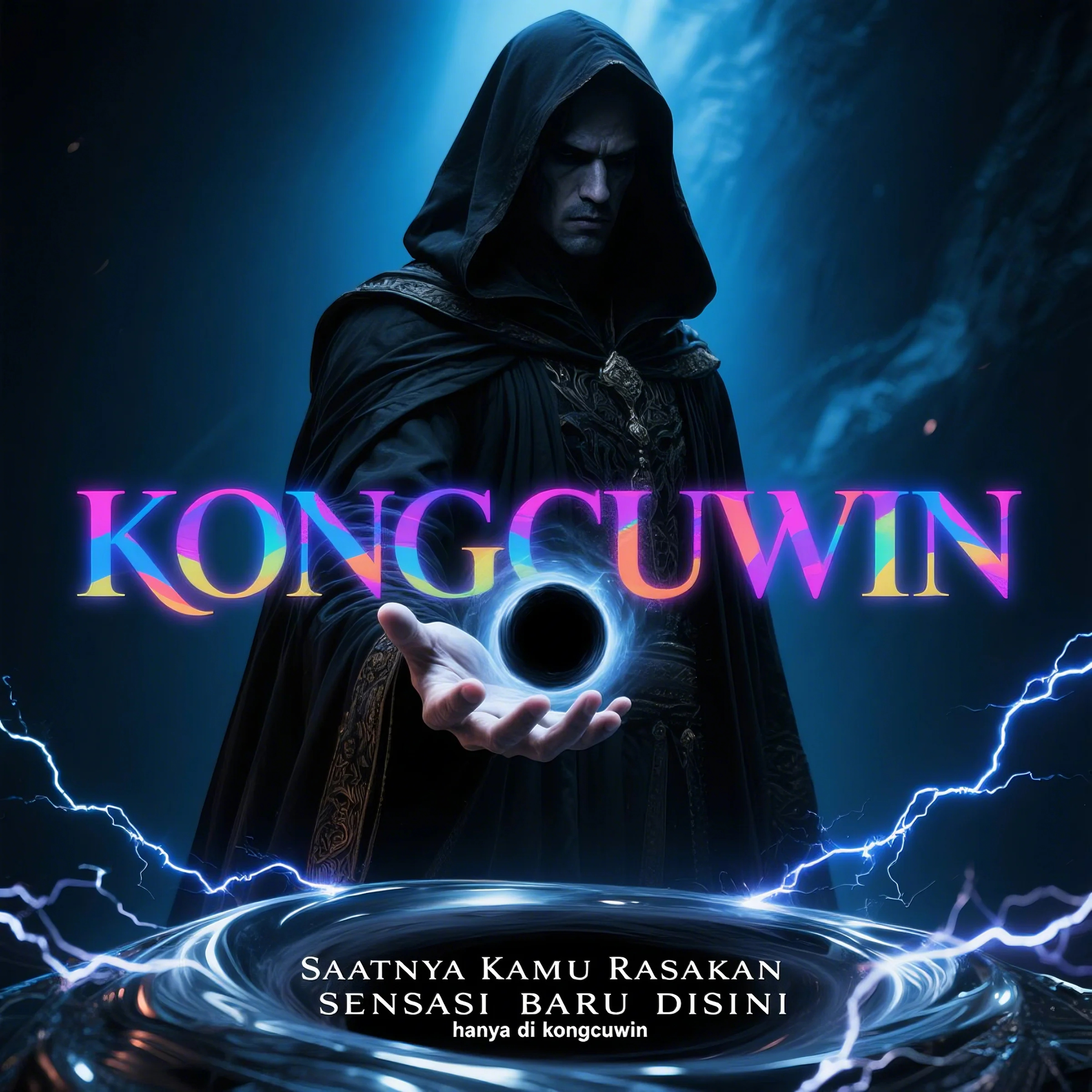 Gambar utama KONGCUWIN menghadirkan sosok berjubah gelap dengan aura magis yang menghipnotis. Dalam genggaman tangannya, terdapat sebuah pusaran energi hitam—simbol dari kekuatan, misteri, dan ketidakpastian. Sosok ini bukan sekadar karakter; ia adalah perwujudan dari perjalanan, tantangan, dan kekuasaan yang hanya bisa ditemukan jika Anda berani masuk ke dalam dunia KONGCUWIN.