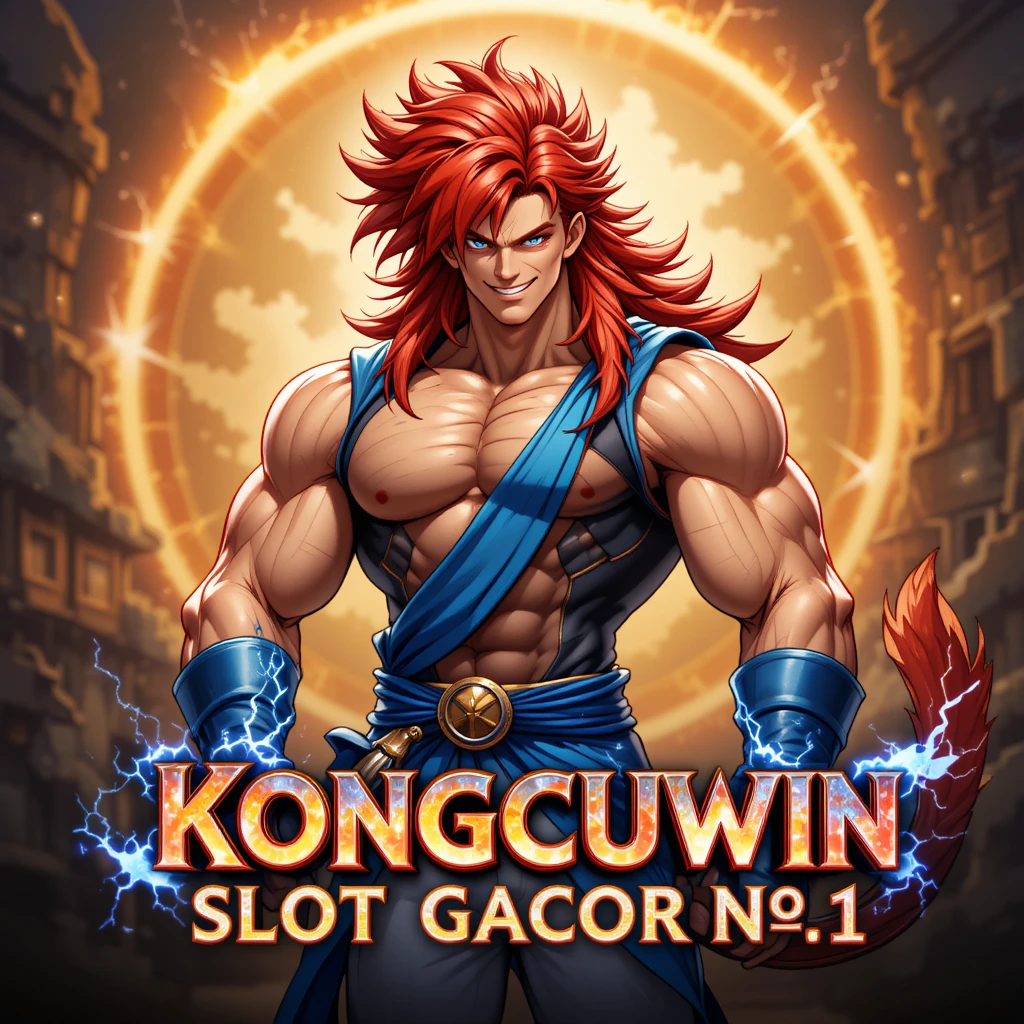 Melihat gambar yang ditampilkan, KONGCUWIN mengusung karakter heroik dengan tubuh atletis, rambut merah menyala, dan aura penuh energi. Sosok ini menjadi simbol dari kekuatan, keberanian, serta tekad untuk meraih kemenangan.