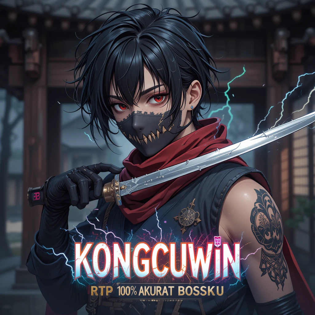 Gambar yang memperlihatkan sosok ninja modern dengan mata tajam, pedang terhunus, dan aura listrik menggambarkan filosofi Kongcuwin: